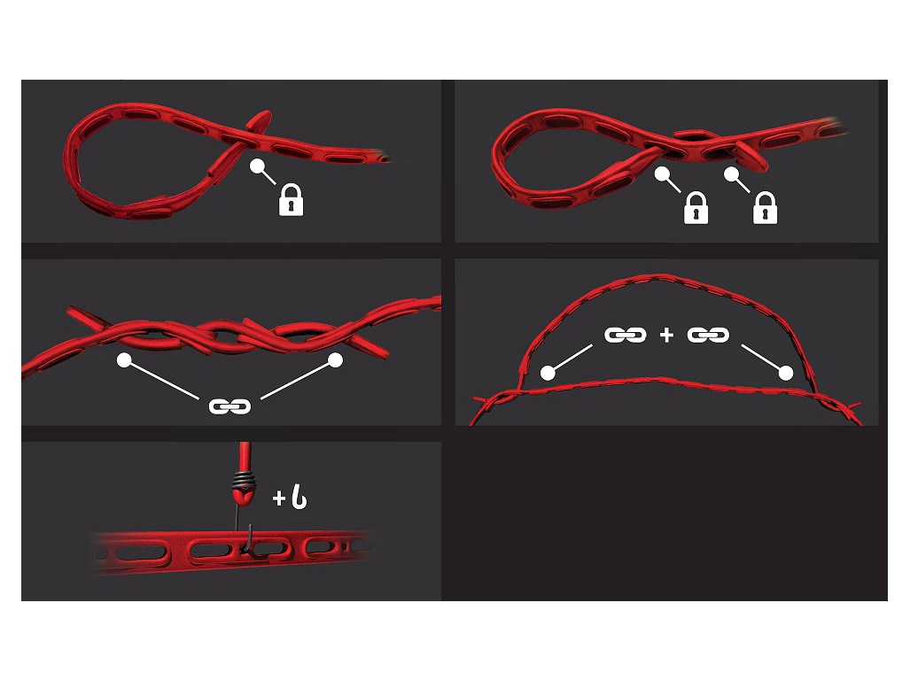 QUICKLOADER Strap je oceněné, patentované a zcela nové a jedinečné řešení pro všechny vaše potřeby malých uvazování doma i na cestách. Řemínek nemá žádné kovové části, což znamená, že nedochází k poškrábání, poškození nebo zranění. Nepraská ani netvrdne a je přizpůsobivý.